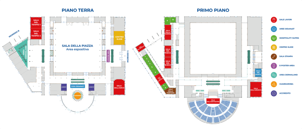 L’area Dermaland è allestita al piano terra, foyer B. In quest’area sono presenti le Case Editrici e le Associazioni Pazienti.
